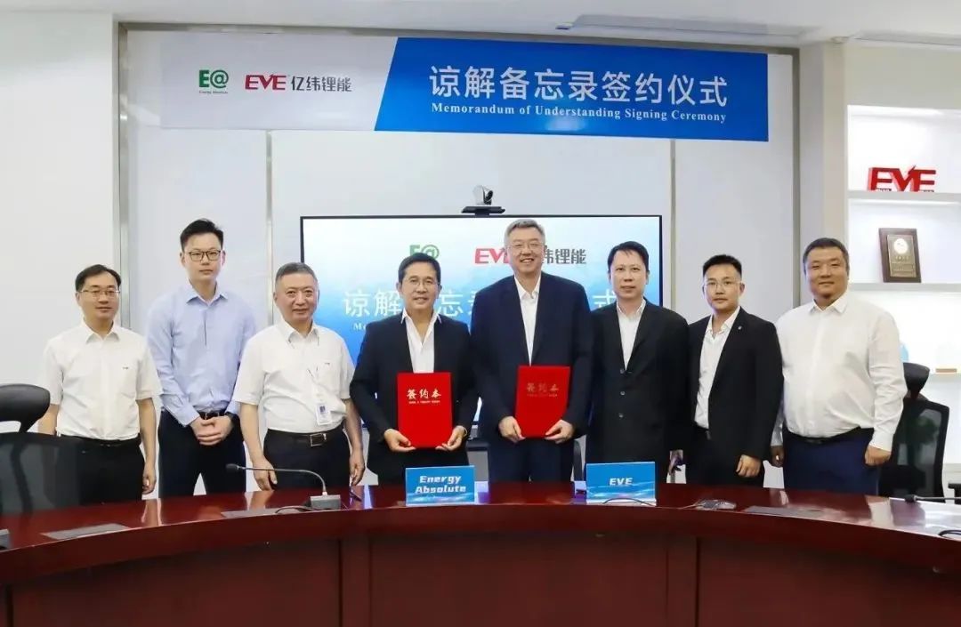 7月27日,惠州億緯鋰能股份有限公司(以下簡稱“億緯鋰能”)與Energy Absolute Public Co.,Ltd.(以下簡稱“Energy Absolute”)在惠州簽訂諒解備忘錄。經過共同研究,Energy Absolute提議由旗下的Amita Technology (Thailand) Co., Ltd.(以下簡稱"Amita Technology")與億緯鋰能擬在泰國共同組建合資公司,以該合資公司為實施主體建設至少6GWh的電池生產基地。